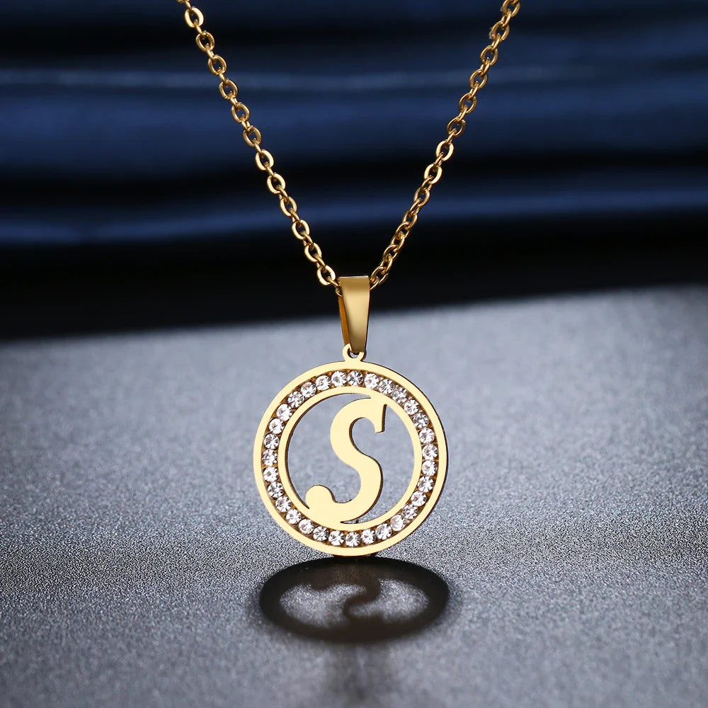 316L Stainless Steel 26 letters A-Z Necklace NEW Crystal Rhinestone Necklaces For Women Wedding Valentine's Day Gifts