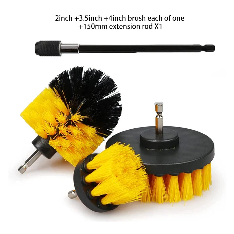 *The four different size brush heads allow you to easily scrub those hard to reach or large surfaces. Truly a perfect way to make every nook and cranny of your house absolutely spotless! The brushes fit into almost all cordless drills including Dewalt, Bosch and Makita etc