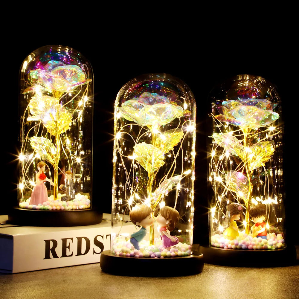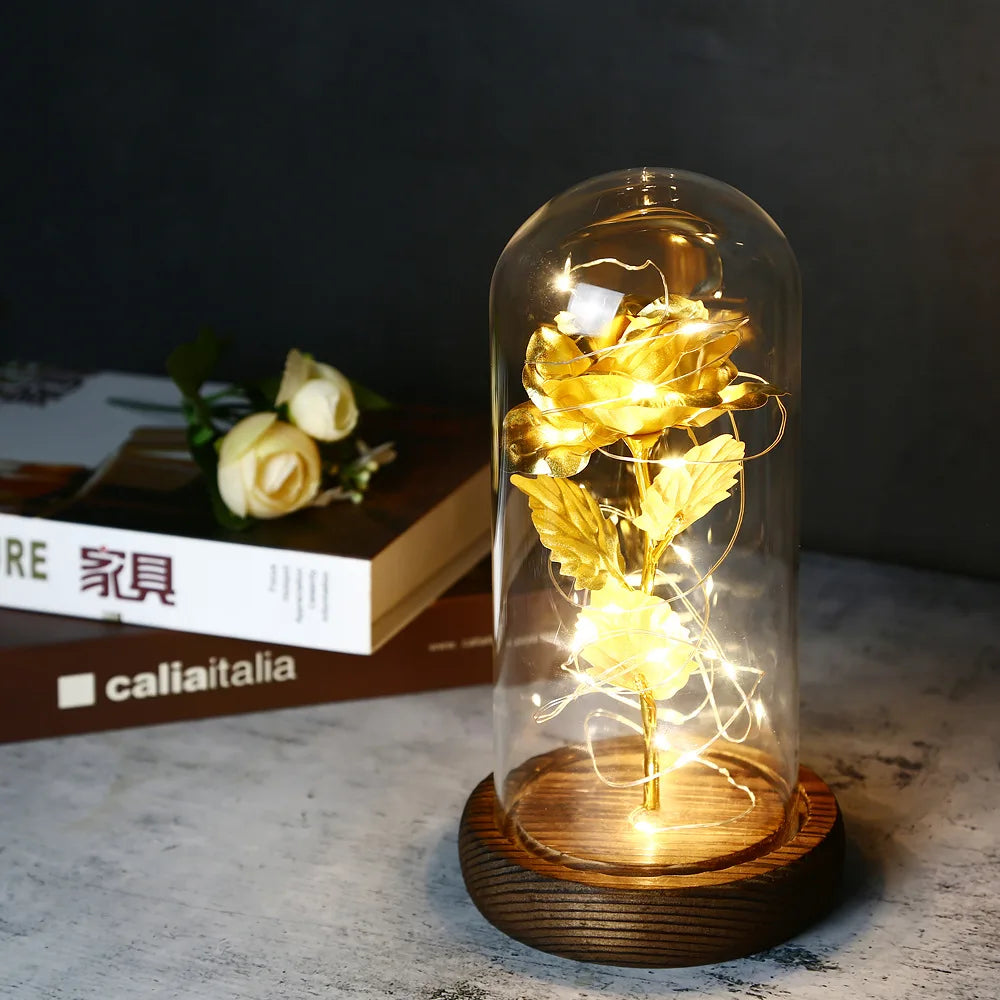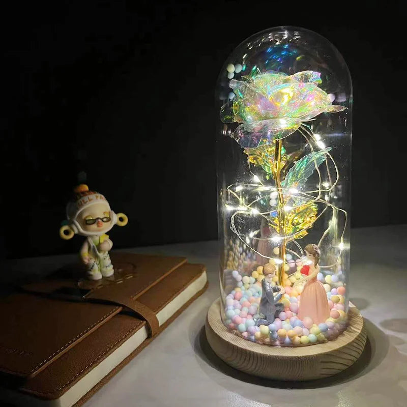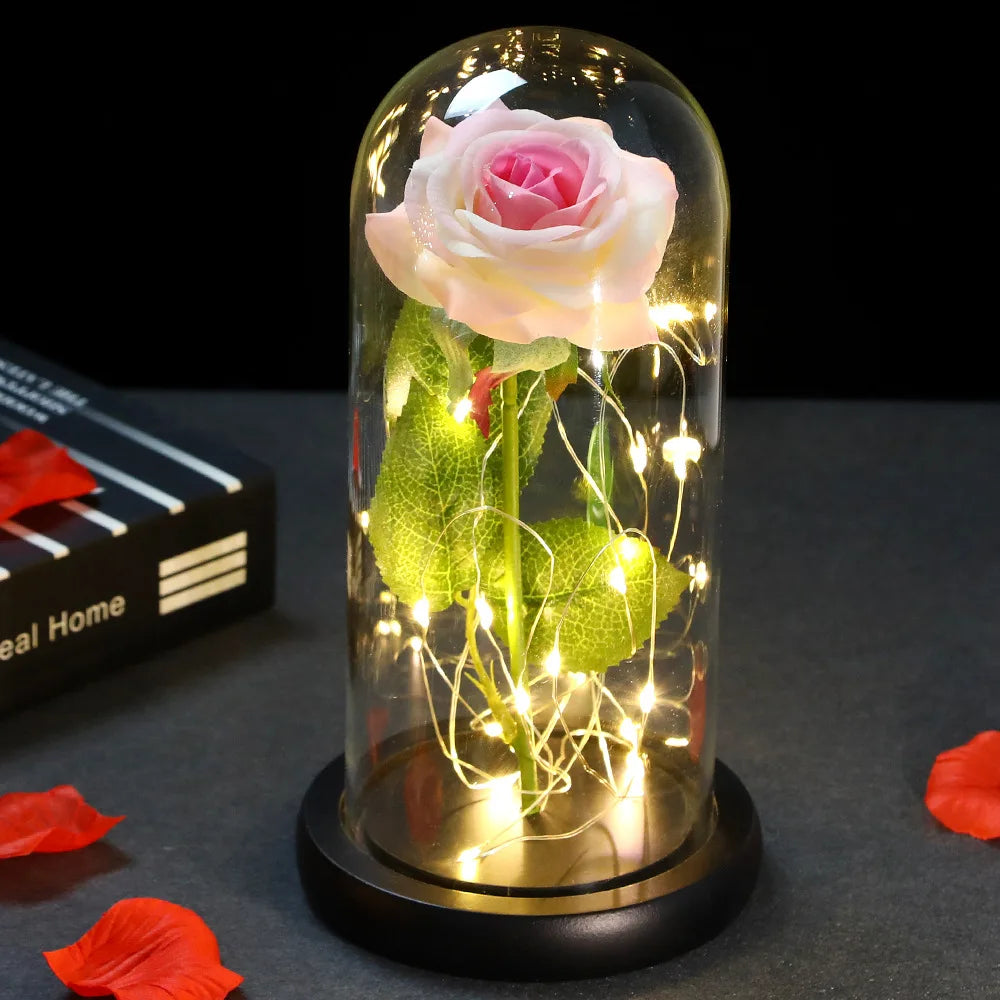 Galaxy Rose with Fairy Lights in Dome – Perfect Gift