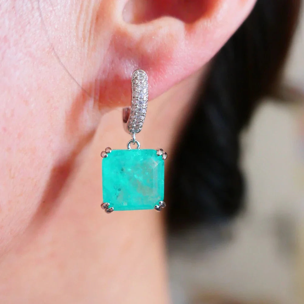 KQDANCE Square 12mm Create moissanite Pariba Emerald Drop Earrings With Green Blue Stone 18K white gold plated Jewelry wholesale
