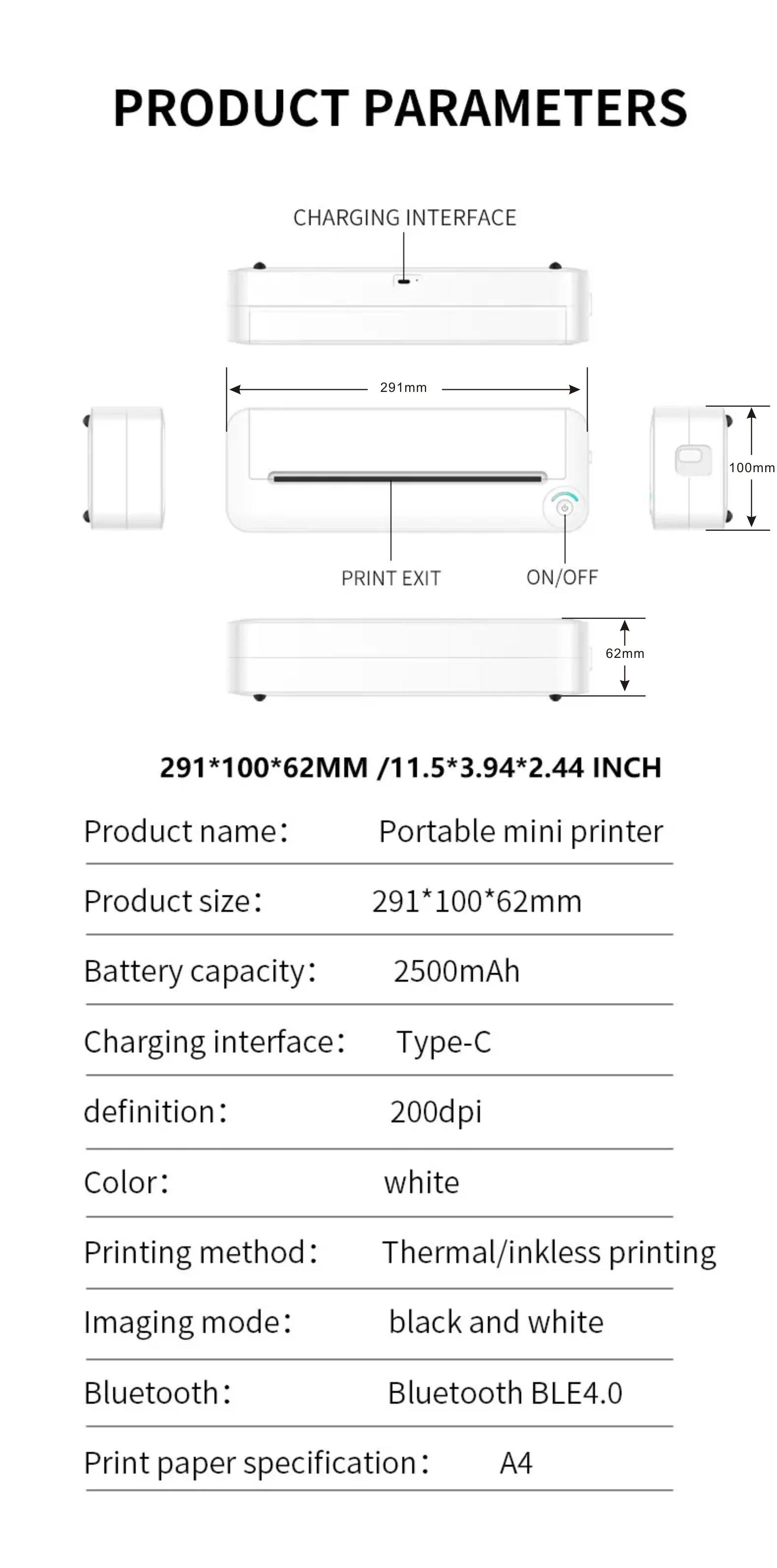 • A4 Paper Size :Supports A4 paper size, making it perfect for printing documents, photos, and more.