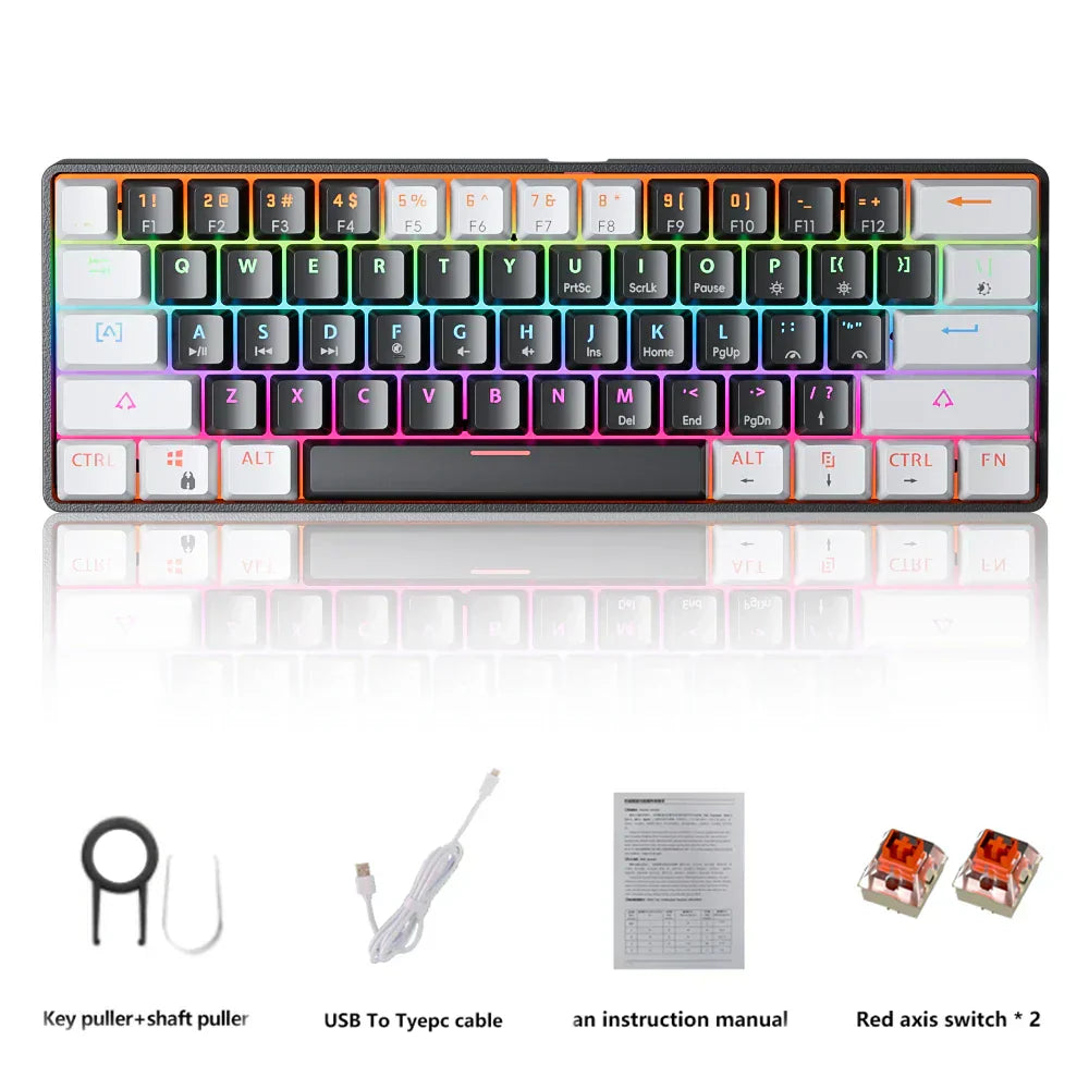 Take your gaming to the next level with this 61-key mechanical keyboard. Features hot-swappable red switches and vibrant RGB backlighting for ultimate customization.