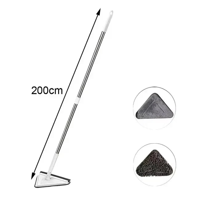 【MULTIFUNCTIONAL DESIGN】The cleaning mop is designed in triangle shape and the dust mop head can rotate 360°.It is easy to clean and reach dead corners, such as sofa, bed, wall corners, ceiling corners and window corners.The mop has an efficient cleaning function for dust and hair, perfect for removing grease and dirt, so it also can be used for cleaning kitchens and shoes.