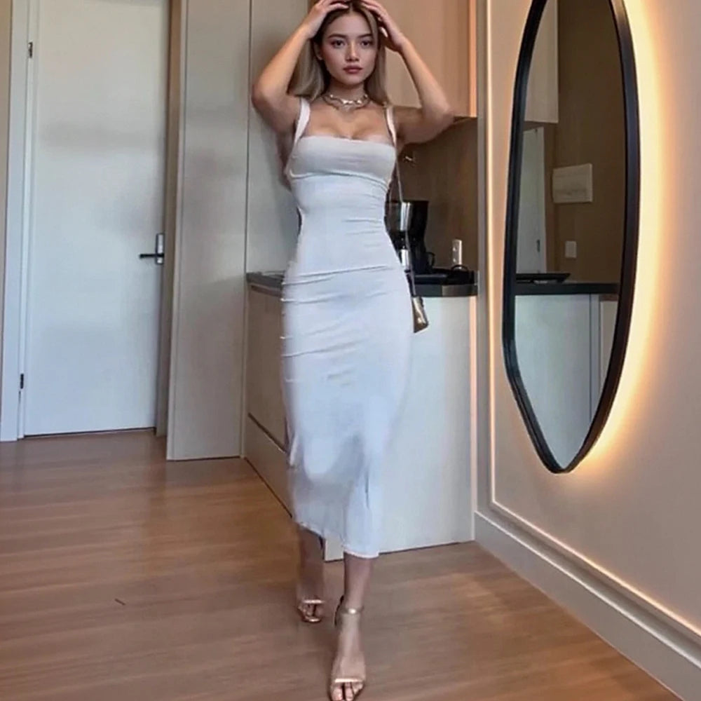 Wefads Bodycon Mini Dress – Slim Fit with Spaghetti Straps & Square Neck